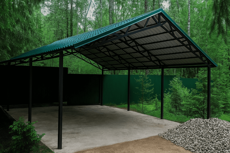 Навес для автомобиля из металлопрофиля — это не просто укрытие от осадков, а функциональное решение для организации пространства на участке. Консультация с нашим специалистом поможет оценить технические особенности вашего участка и выбрать оптимальную конструкцию.