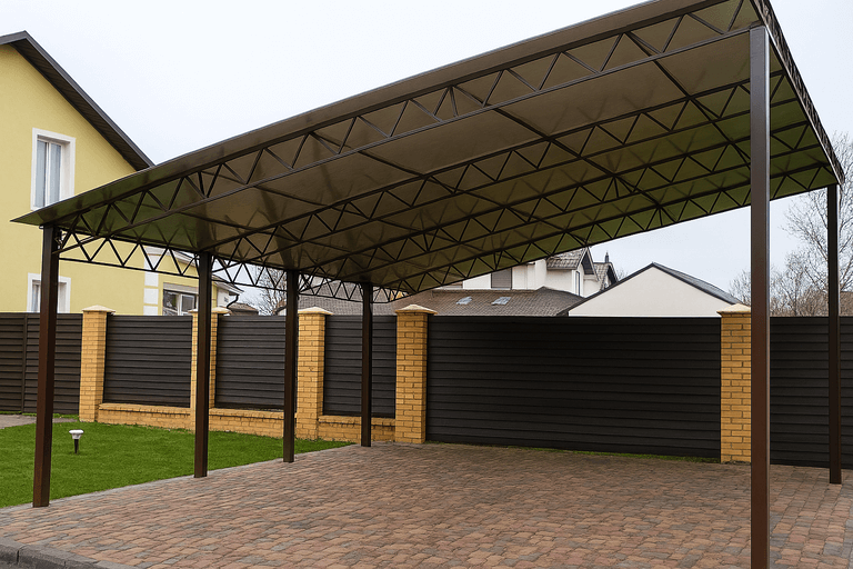 Навес для автомобиля из металлопрофиля представляет собой прочную и долговечную конструкцию, способную защитить транспортное средство от осадков, ультрафиолета и механических повреждений. Для его осуществления важно учитывать особенности участка, масштаб укрытия и предполагаемые нагрузки.