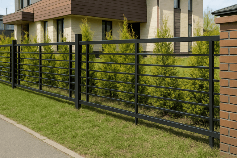 Наиболее популярными остаются заборы металлические сварные, особенно выполненные из профильной трубы. Такие решения оптимальны по сочетанию жесткости, срока службы и визуальной аккуратности.